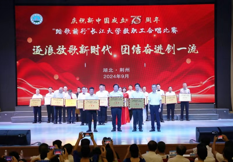(通讯员 廖鹏程)为庆祝中华人民共和国成立75周年,引导广大教职工抒发爱国之情、砥砺强国之志,9月28日下午,学校在东校区大礼堂隆重举行“踏歌前行”教职工合唱比赛。经过激烈的角逐,机关代表队以一首激情澎湃的《太阳集团1088vip校歌》斩获校歌组一等奖。
